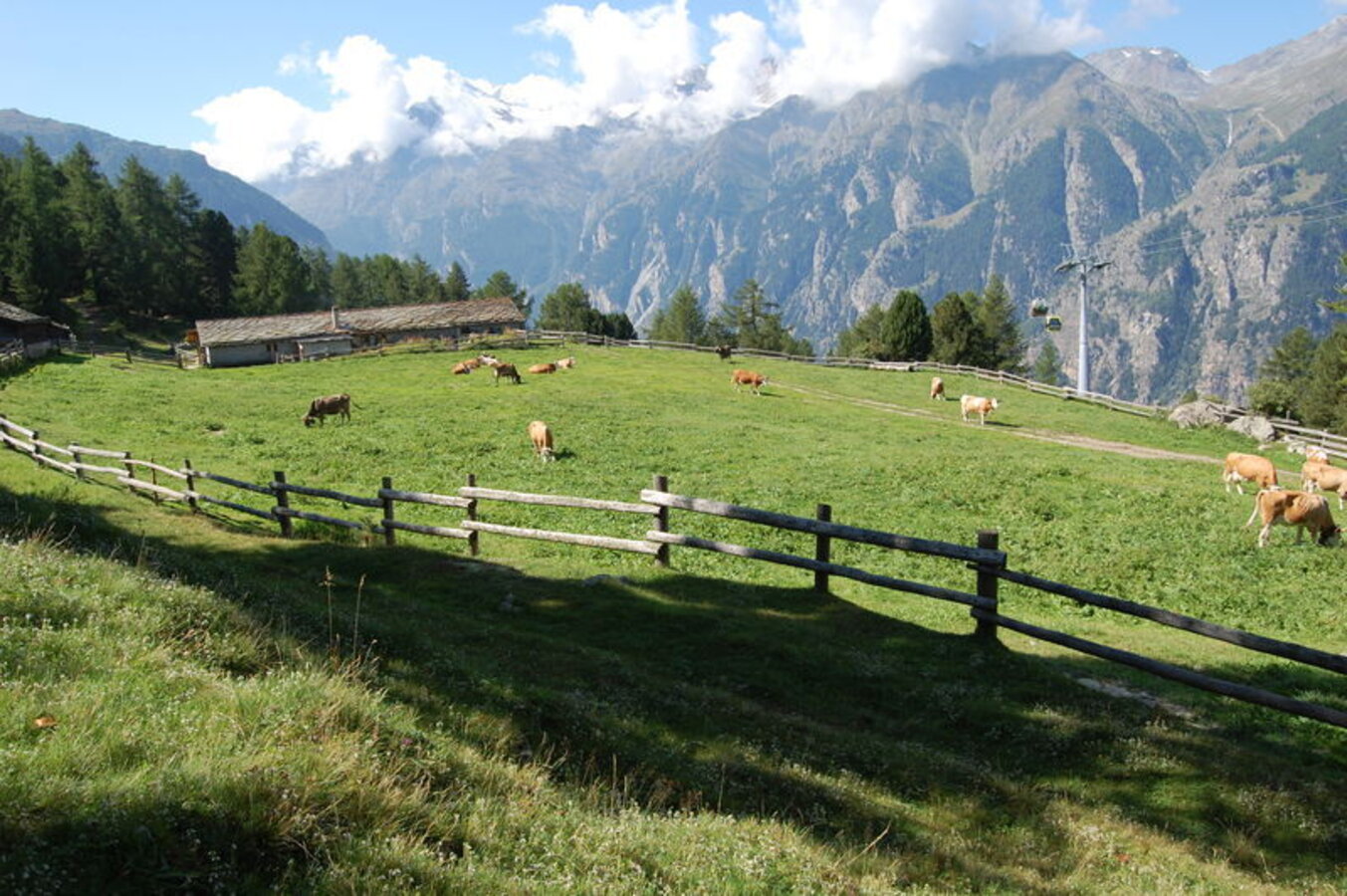 Vom Dorfplatz ansteigend führt euch diese Tour nach dem Sportzentrum links den Waldweg steil hinauf zum See. Durchatmen und dann folgt ihr linkerhand der Wegführung über saftige Wiesen zur Alpe Äbnet, unterquert die Hannigalpbahn und wandert weiter durch den erfrischenden Lärchenwald. Folgt der Ausschilderung via Riti bis Bärgji.