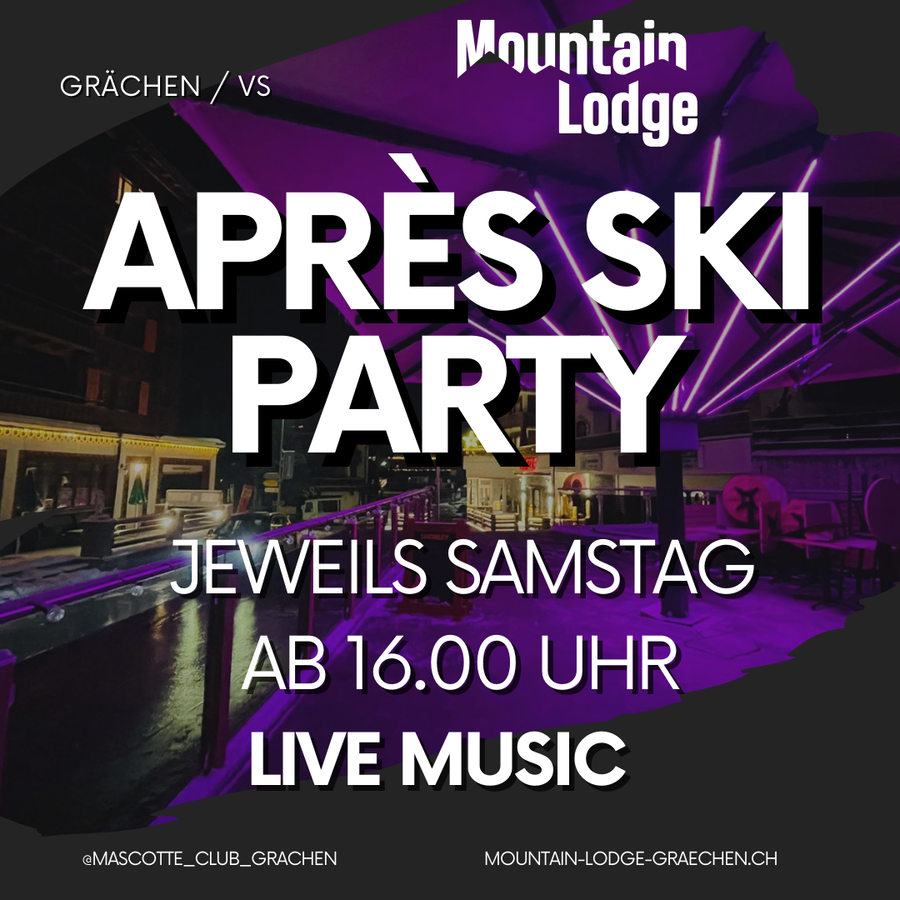 Every Saturday until the end of March, the big après-ski party starts at the Mountain Lodge in Grächen from 4.00 pm. For two hours - until 6 p.m. - there's live music from cool artists, fine drinks, fondue and that typical winter party feeling that immediately puts you in a good mood.