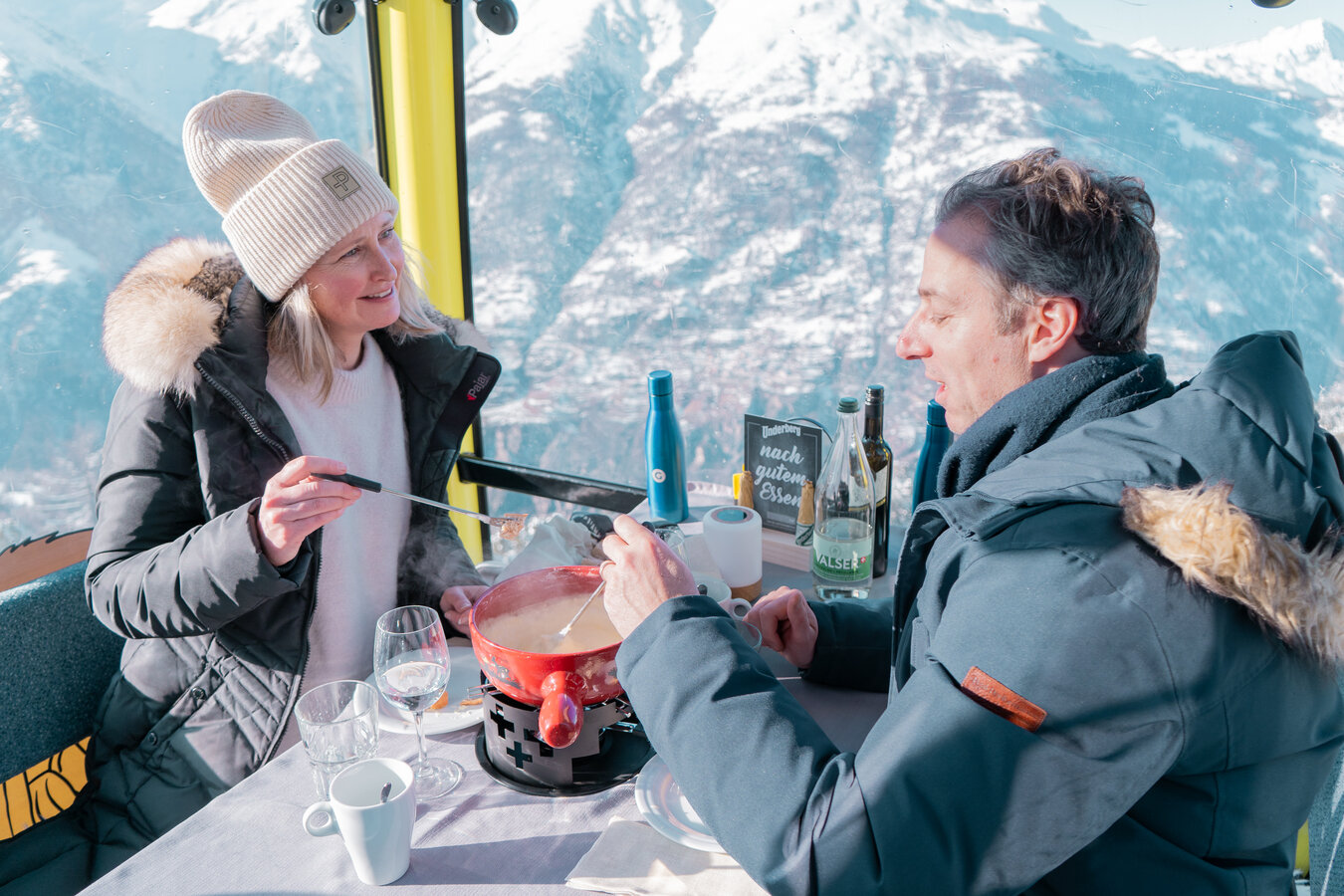 Wintertime is fondue time. And where better to enjoy your fondue than snuggled up in a real ski gondola?