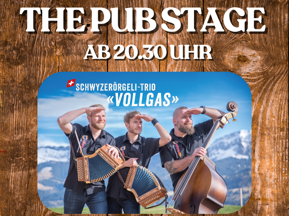 When traditional folk music meets pure joy of playing, then Schwyzerörgeli-Trio "Vollgas" is at the start! The three thoroughbred musicians - Martin Vogel, Silvan Vogel and Adi Zurkirchen - have been delighting young and old for years with rousing Schwyzerörgeli music: from classic Ländler sounds to modern, surprising interpretations. There is only one gas: full throttle!