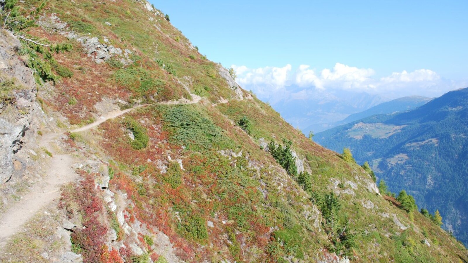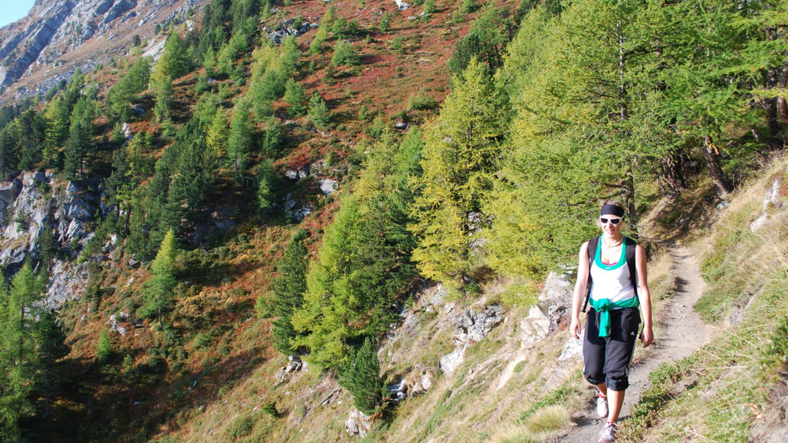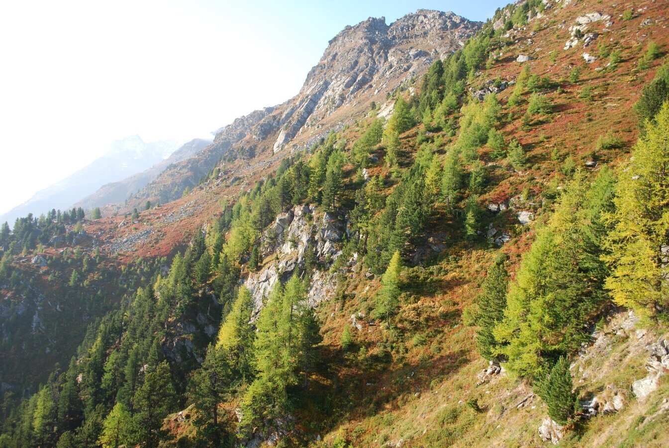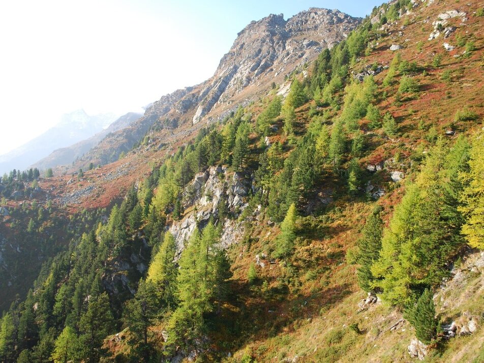 - On the rest of the route, you will hike through rocky sections, cross the Schweibbach stream via a wooden footbridge and find your way through the fragrant larch forests of the Saas valley.