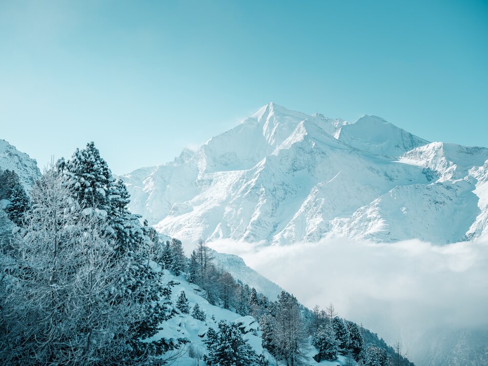 The majestic Weisshorn rises up right in front of you: at 4,505 metres, it is one of the highest peaks in the Alps. In the morning it glows pink, at midday it appears powerful and clear, and in the evening it disappears into the golden light.