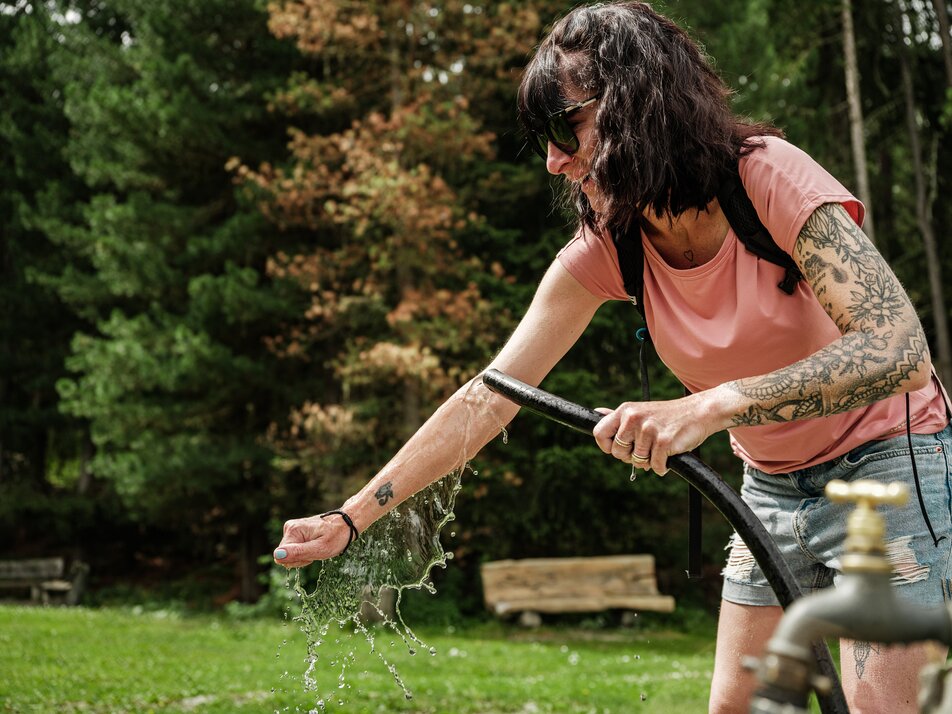 Whether you’re on a demanding hike up to the Wannihorn, on a long walk along the Suonen or on a spectacular bike ride on the Flowtrail – you'll arrive at Lake Grächen with tired legs. But you’re in luck because there – nestled between the fragrant larch forest and the mountain lake – is a Kneipp facility. Dip your arms and legs into the Kneipp pool filled with icy glacier water and enjoy the tingling sensation!