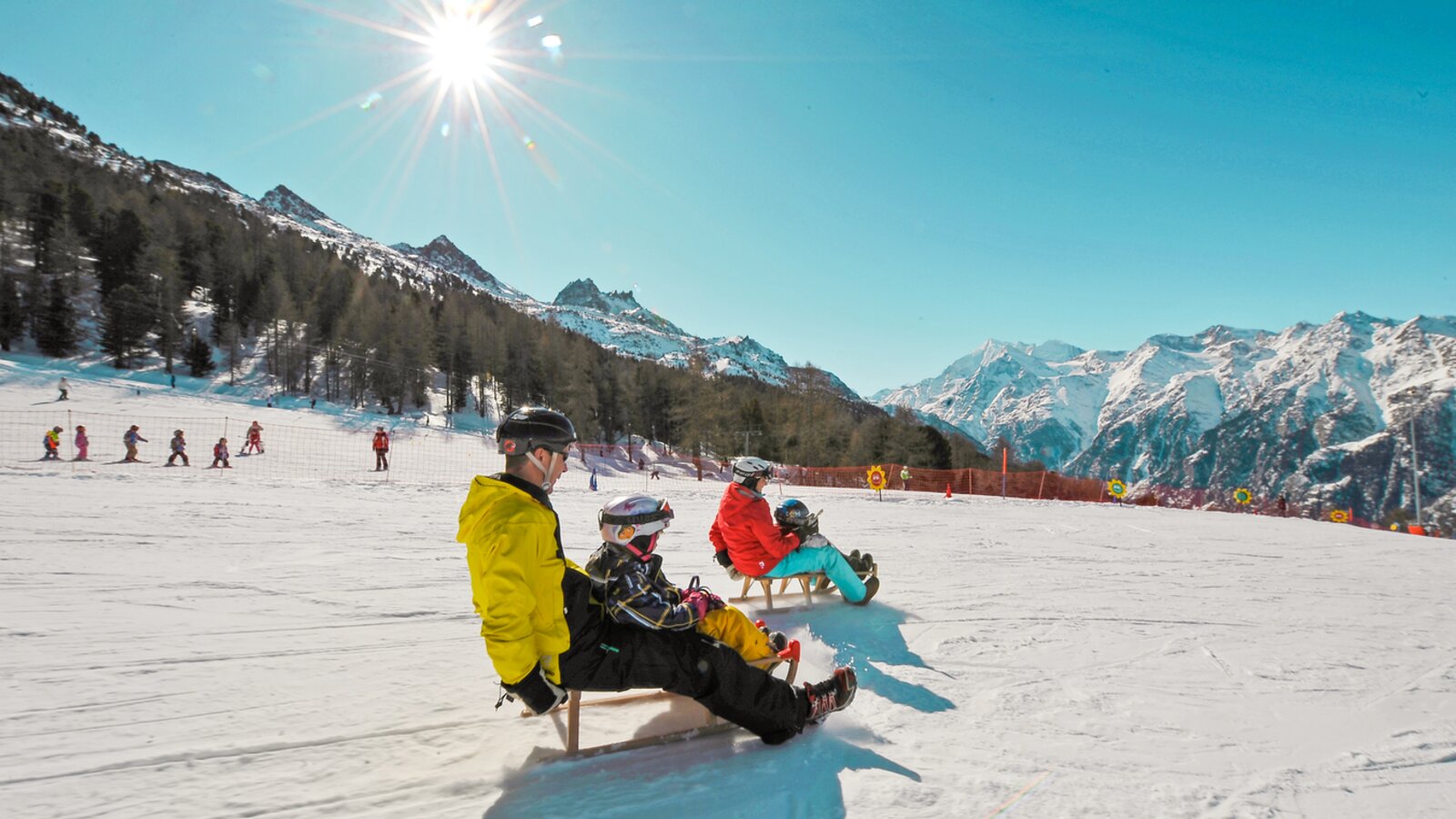 For many snow lovers, the highlight of their winter holiday is sledging together! Make yourself as comfortable as possible on the sledge, then hold on tight and race downhill at speed!