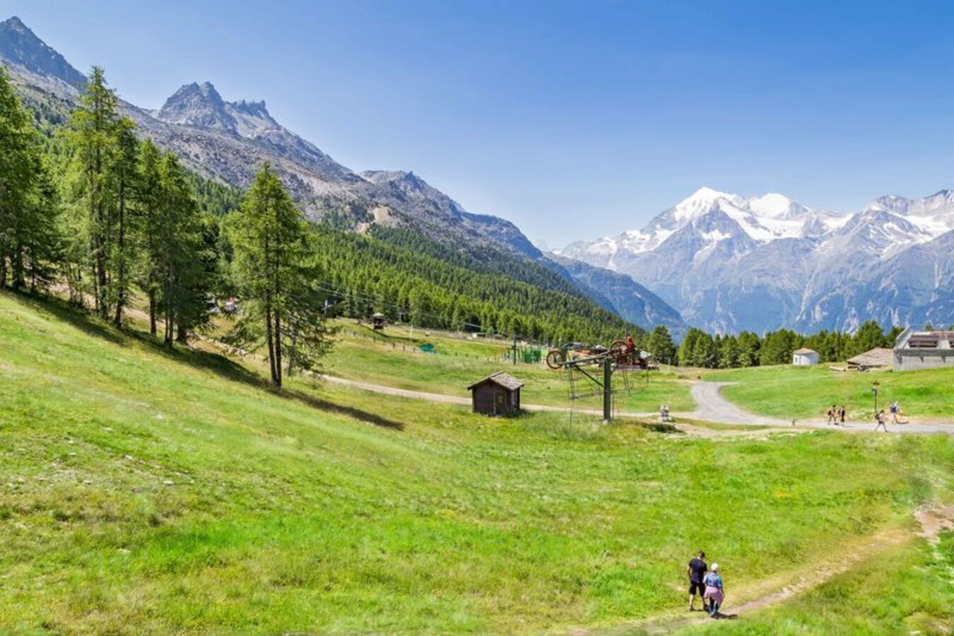 With a view of the fantastic mountain scenery, you start your route from Hannigalp downhill in the direction of the Paradiesli ski lift and hike right through the refreshing larch forest. After about 500 metres downhill, you will arrive at the Hohtschuggen restaurant and vantage point. The way back leads you from the forest path along a gravel path past the valley station of the Bärgji lift to an asphalt road that takes you back to the village past the chapel on the Egga.