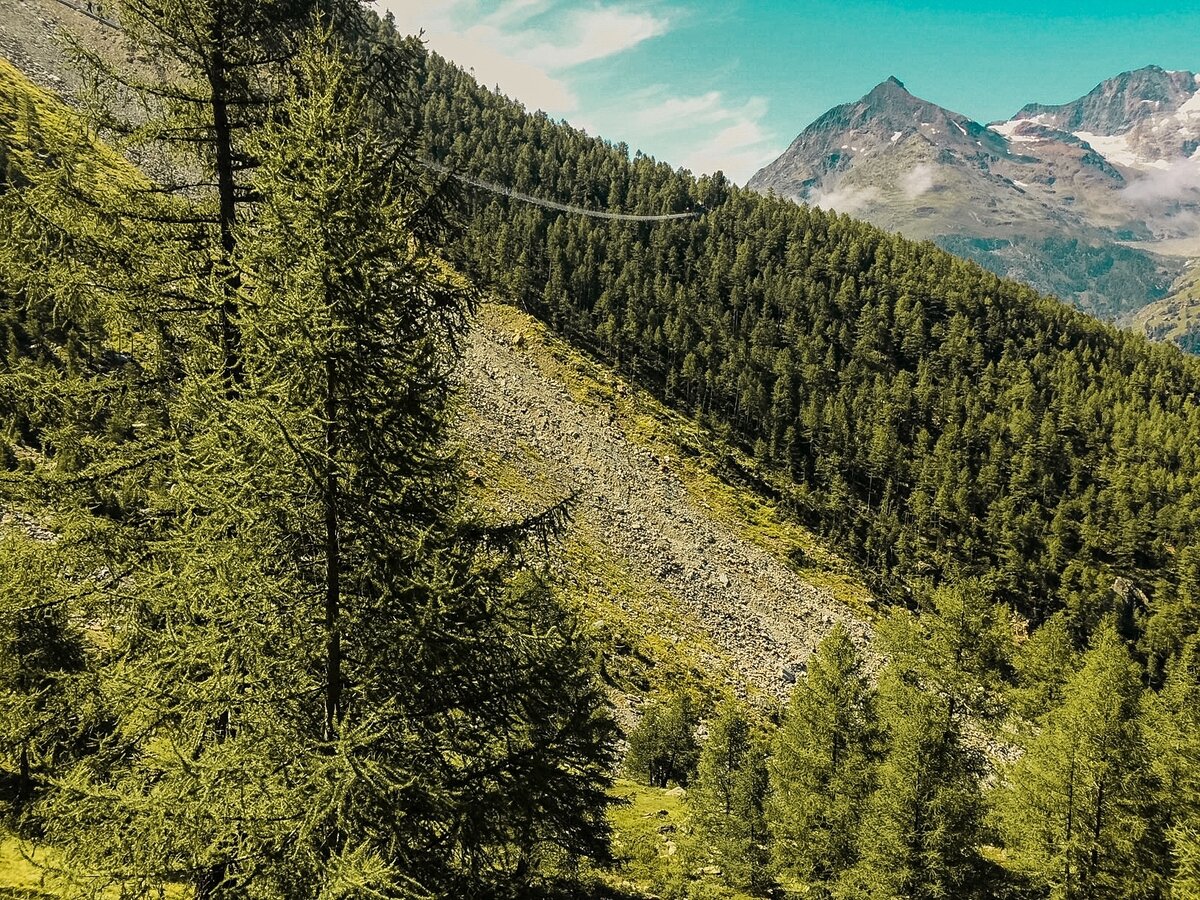 In 1997, those responsible from the municipalities of St. Niklaus, Grächen, Randa, Täsch and Zermatt took advantage of this breathtaking nature and created the Europaweg. In 2021, the first stage from Grächen was redesigned and now leads in a varied and spectacular way to the Europahütte above Randa. From there it goes over the suspension bridge, the longest pedestrian suspension bridge in the Alps, which spans the Grabengufer. It is 494 metres long and at the highest point you float 85 metres above the abyss. Then continue towards Täschalp and finally to Zermatt.