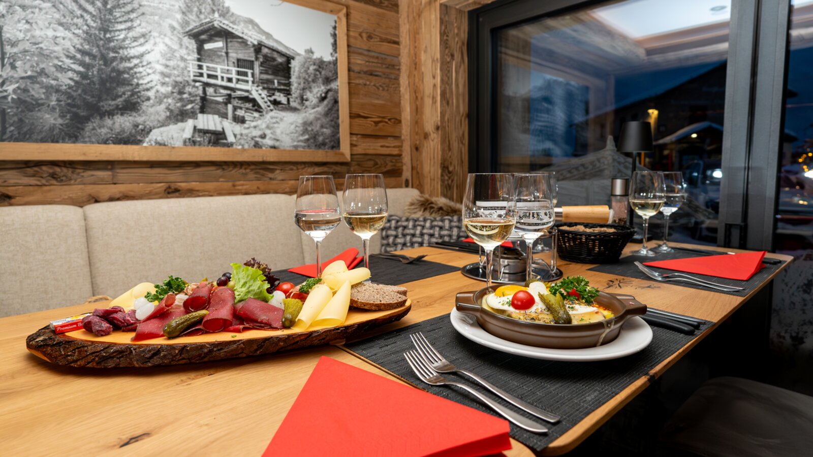 In a cosy ambience, the hosts Sara and Hannes Schalbetter serve you culinary highlights in a class of their own. The finest meat specialities and vegetarian delicacies are always freshly and creatively prepared and served with excellent wines. Special tip: As a passionate hunter, Hannes is happy to serve you a wide variety of game dishes.