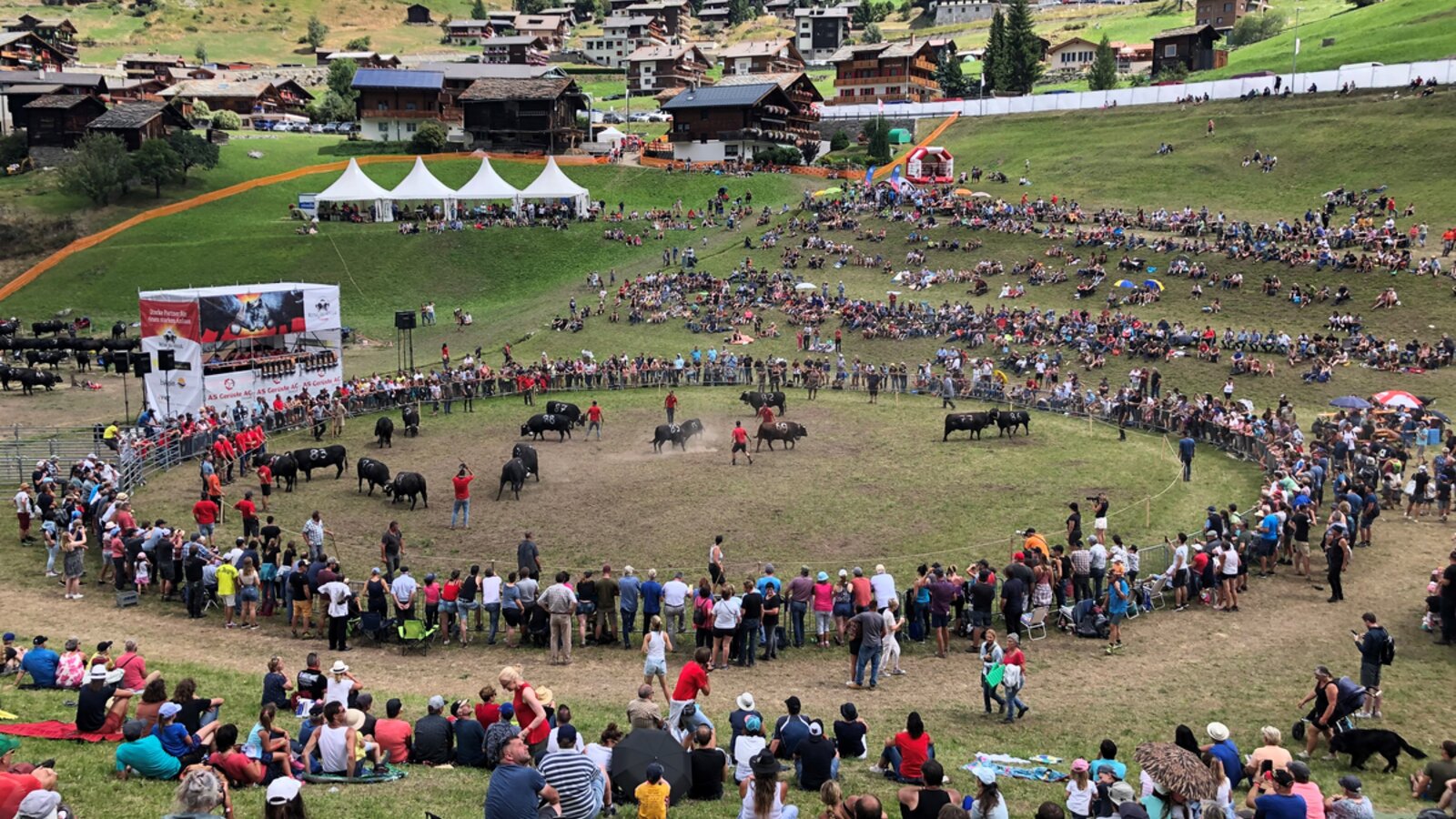 An unforgettable day full of lived traditions, folklore and sporting spirit – that’s the Grächen Sommerstechfest. At the “Reine du Soleil” mega-event, visitors watch in suspense as the Eringer cows compete against each other in the “Ringkuhkampf”! In a wide variety of categories, you can experience something particularly exciting: the natural combativeness of the impressive animals, which have shaped Grächen’s culture for generations.
