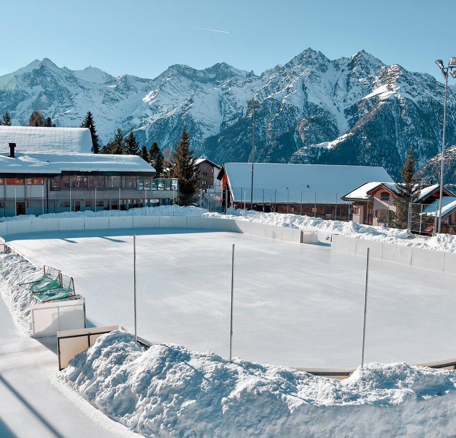 The sport centre of Grächen has a natural ice rink. This can be run from about the end of December to the end of February depending on the weather conditions. During the ice rink’s opening hours the bistro in the indoor playground is also open where you can eat something small and drink in the warm.