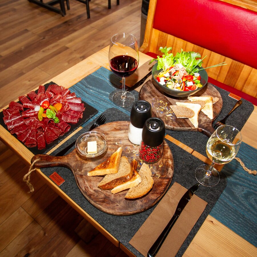 Our tip: Homemade beer soup with cream and fine Alpine salt with Swiss stone pine and spices from the Lötschental | 9.50 CHFGrächnerteller: dried meat, raw ham, dried bacon, Roli's Hüswurst and alpine cheese | 26 CHF